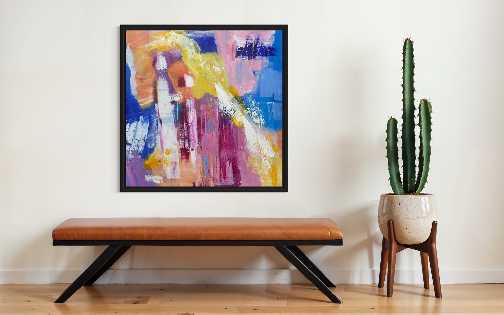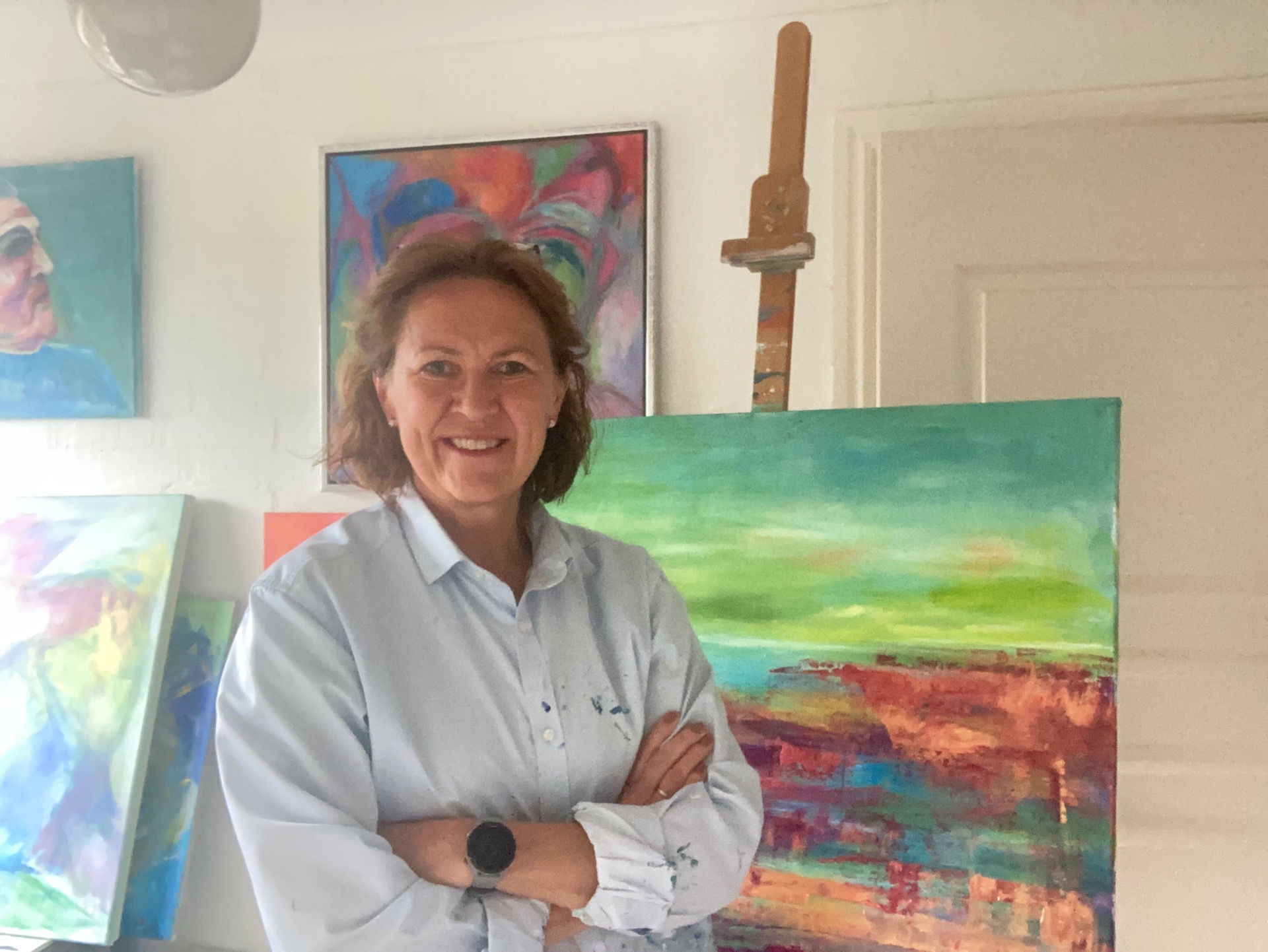 Mit arbejde bevæger sig i spændingsfeltet mellem det figurative og det abstrakte, primært i akryl på lærred, hvor jeg løbende eksperimenterer med udtryk og teknikker. Men jeg har også arbejdet med tegning, qrouquis og modsik. For mig er det ikke materialet men processender er det væsentligste.